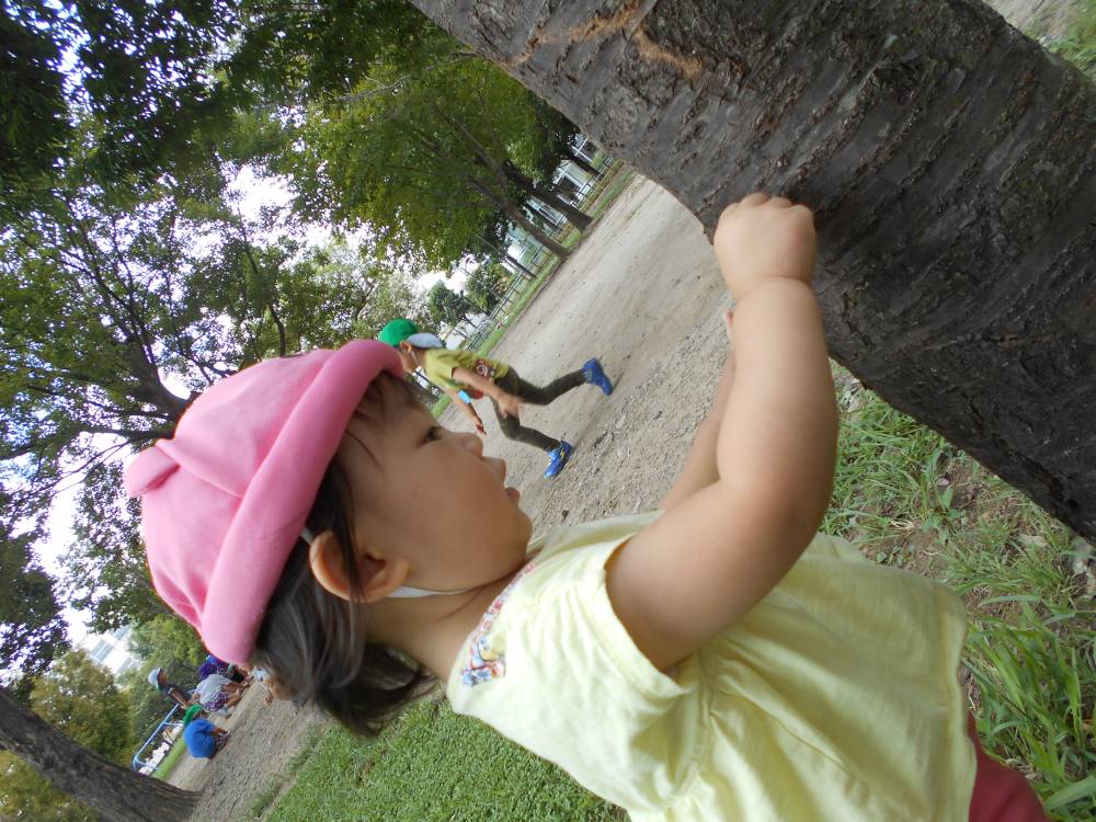 木にタッチしてみたり✋、草に興味を持ったり👀❕