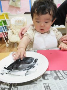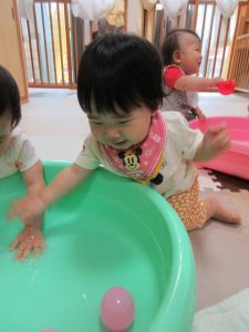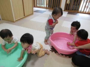 七夕の雰囲気を味わった後は、室内で水の感触遊び!