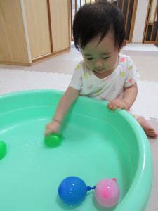 水風船を握ったりして冷たい感触を楽しみました🐣