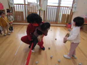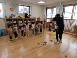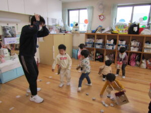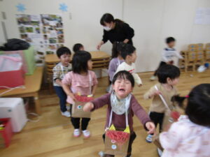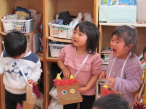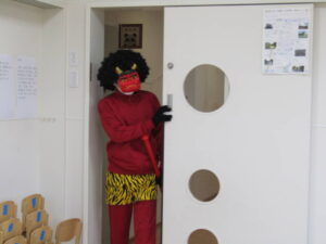鬼がやって来る前に、鬼の退治の仕方を伝えるとみんな元気よく「おには~そと!」「ふくは~うち!」という事が出来ていましたが・・・