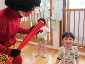 本物の鬼の姿にびっくりして・・・大声で泣き出す子どもたちでした