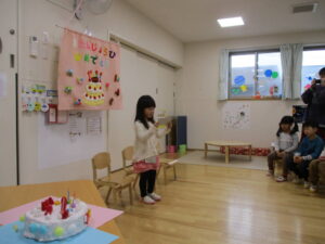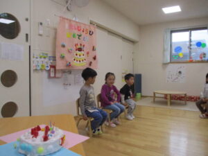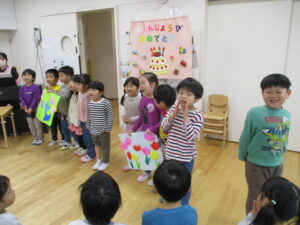 4月の誕生会を行いました!今年からは幼児クラスの集会に参加します✨