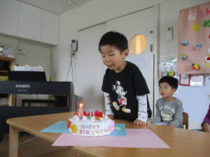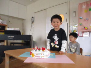 みんなに歌と誕生日おめでとうとプレゼントしてもらいケーキのろうそくをふーっと消しました🎂