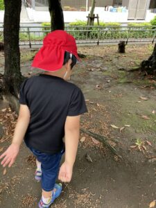 公園を綺麗に使うと気持ちがよいねという話をすると、またごみを見つけたら拾う!と言う姿がありました。