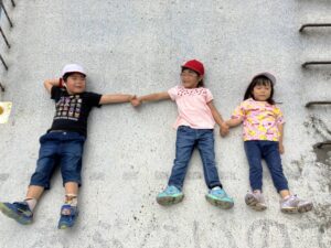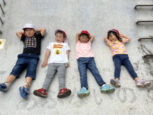 目をつぶって寝転がったり、お友だちと手を繋いだりと可愛らしかったです❤