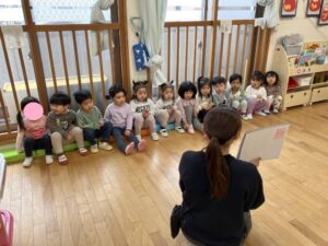 当日は「節分って何だろう?」「どんなことをするのかな?」とスケッチブックシアターで見てみました!