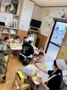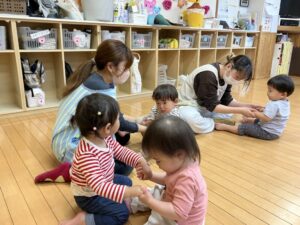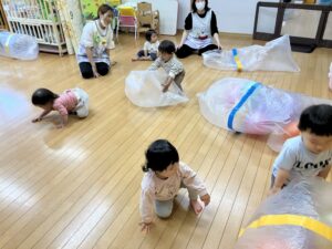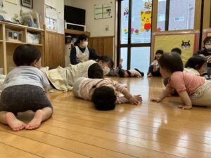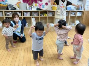 さくら組さんと一緒にお部屋を大きくしてみんなでリズムをしました🎶