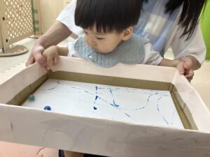 ビー玉の動きをじーっと見たり、音を楽しんだり姿も見られました😊