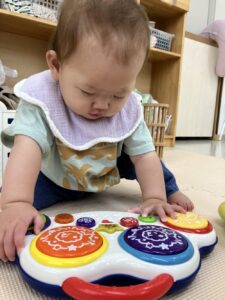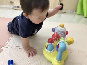 ハイハイやつかまり立ちで元気に動き回る姿がたくさん見られ、気になるおもちゃを見つけては「これなに?」というように近づいていく姿がとても可愛らしいです🥰