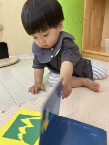 絵本の時間も大好きで、じっと見つめたり、ページをめくってみたりと、それぞれの楽しみ方で過ごしています😄