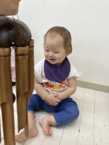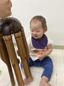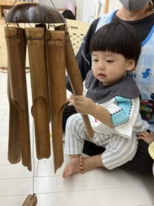 大きな竹の楽器から響く優しい音色に耳を澄ませながら、手を伸ばして鳴らしてみる子どもたちでした😄✨