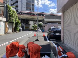 電車の見えるスポットに着くと、子どもたちは線路をじーっと観察し、電車の音が聞こえてくると、「あ!」と嬉しそうにしていました😊