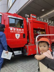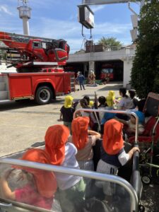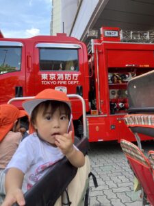 消防署に着くと、大きな消防車に釘付けの子どもたち😆