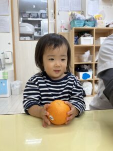 全部の果物を触ったあとには、それぞれお気に入りの果物を大切に持つ姿が、可愛らしかったです😊💕