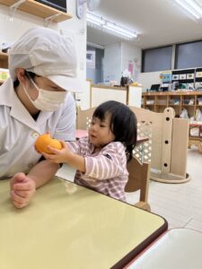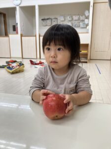 さて昨日のたんぽぽ組は食育の一環として、果物に触れました🍎