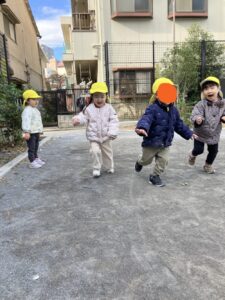 相変わらず運動会のかけっこごっこがお気に入りで、保育者役を交代しながら「並んでくださーい」「お名前呼びます、〇〇ちゃん・くん」「位置についてよーいドン!」と楽しく上手に遊んでいます🎵