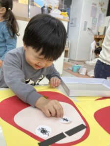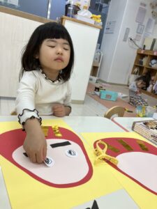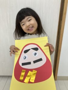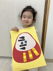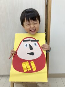 だるまさんの福笑いしたよ😍みんな目つぶってね!