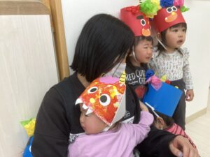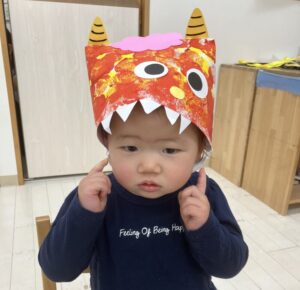 節分の行事では、鬼の登場に驚いて涙が出てしまう子もいれば、へっちゃらな様子で見守る子もいました!