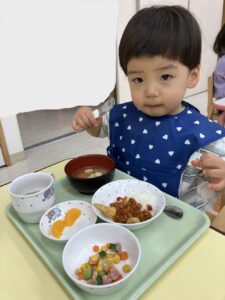 給食では、節分の特別メニューも味わいました😊
