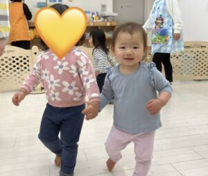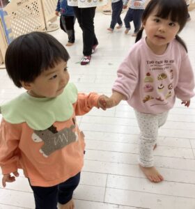 「おおかみさん」の音楽では一歳児クラスのお友だちと手を繋ぐ姿も・・・!