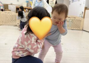 「わんわん」と声に出したり、同じ方向を見て気持ちを共有する姿に、友だちへの意識の広がりを感じています👏