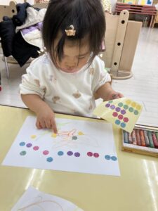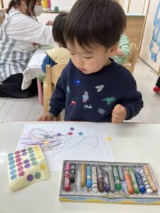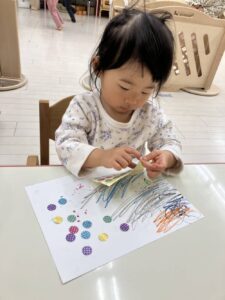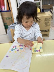 まずは紙にお絵描きとシール貼り😆